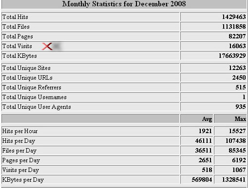 ANTIGO RECORDE EM JANEIRO 2009 COM UM TOTAL DE 17.702 VISITAS (MÉDIA 590 DIA)