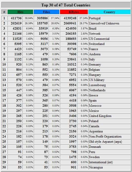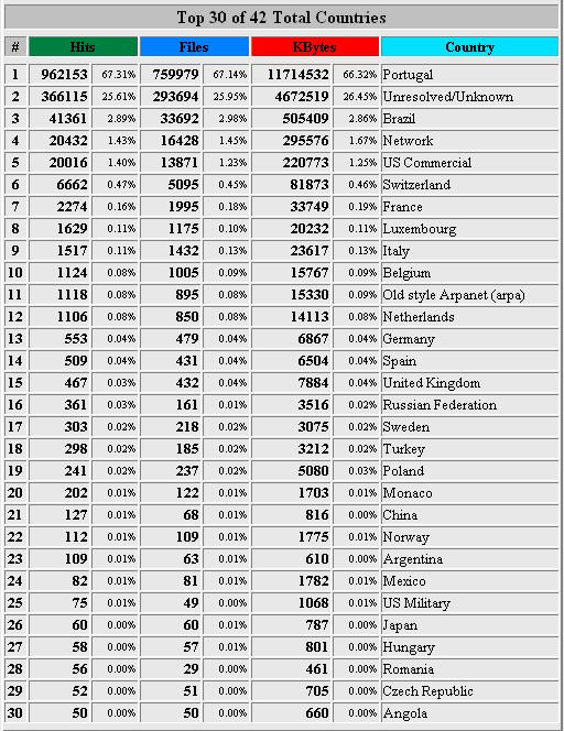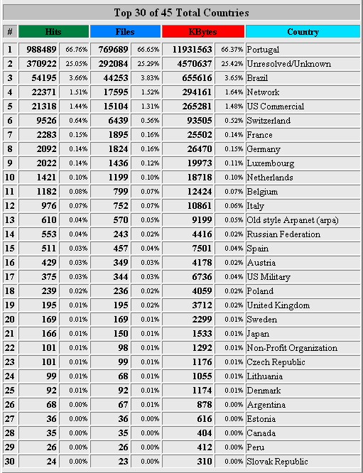 30 MAIORES ACESSOS EM JANEIRO POR PAÍSES
