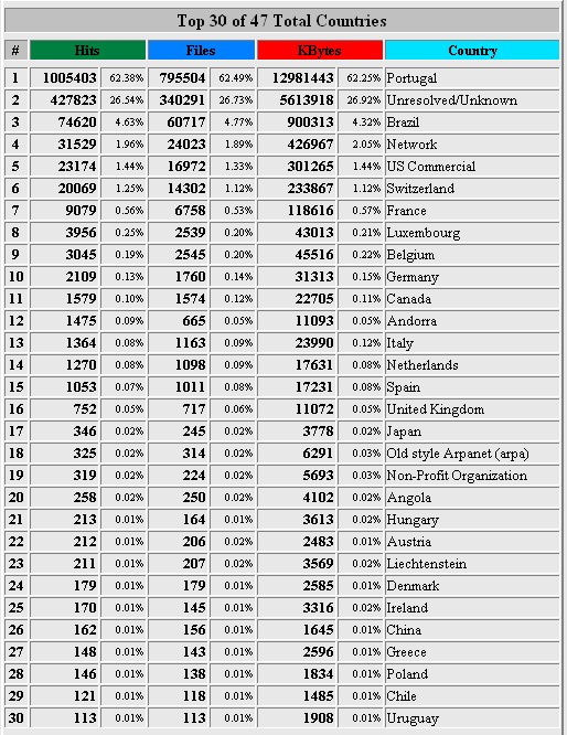 30 MAIORES ACESSOS EM NOVEMBRO 2007 POR PAÍSES