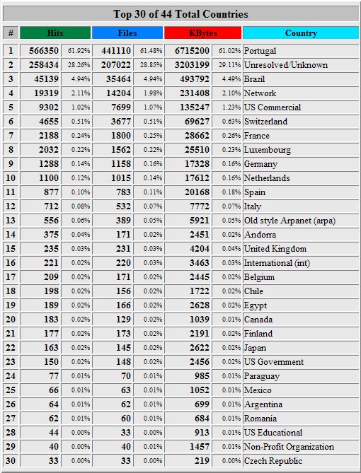 30 MAIORES ACESSOS EM NOVEMBRO 2008 POR PAÍSES