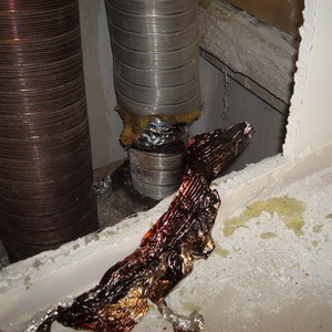 Burnt aluminum tape which was releasing odors and burnt glass fiber |