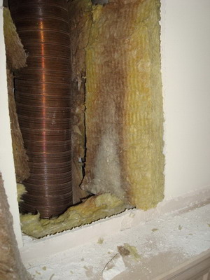Air distribution duct insulated with glass wool |